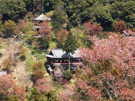 ここから、去年訪れた如意輪寺の本堂や三重塔が見えました。