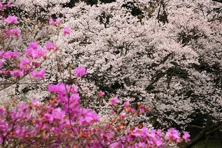ミツバツツジと千年桜です。