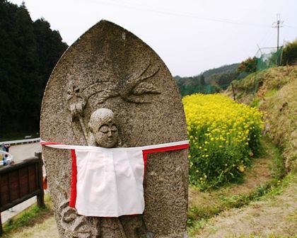 菜の花畑には、可愛いお地蔵様がいらっしゃいます。