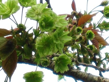 濃い緑色の桜 御衣黄桜です。