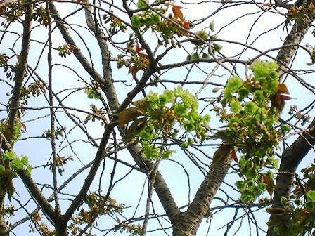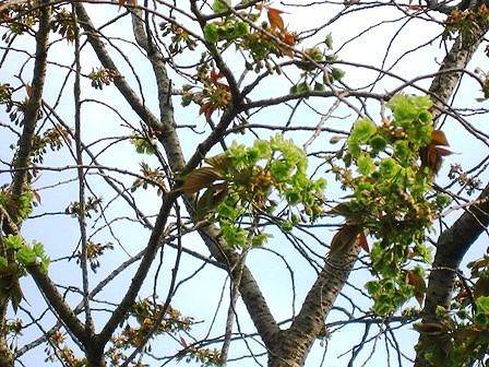 濃い緑の桜が咲いていました。