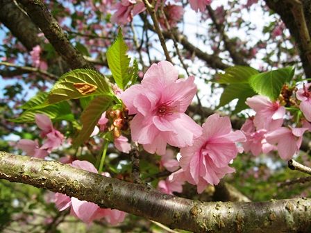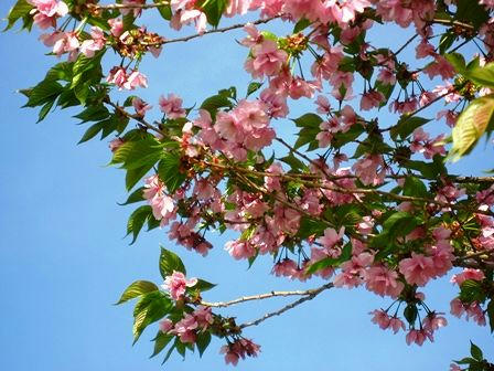 この桜の木も満開でした。青空にピンクが映えます。