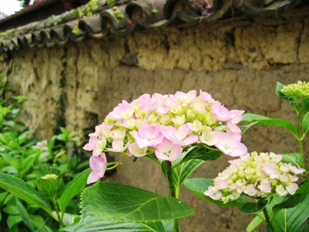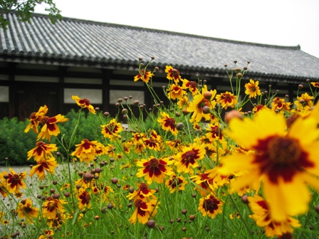まず、入り口の門ですが、東門で重文です。東大寺から移して来られたそうです。その東門の前に少しですが、あじさいがありました。まだ咲き始めですが、ちょっと嬉しかったです。拝観料は400円です。