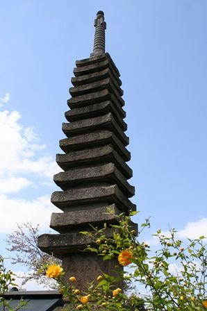 本堂とヤマブキ、十三重の塔とヤマブキ、絵になりますね。