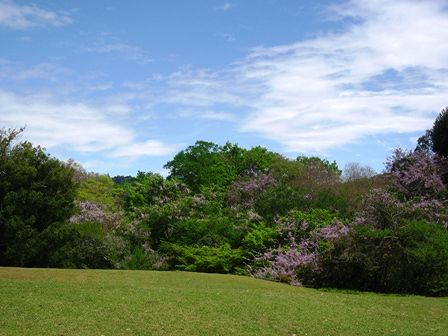 一瞬紫色の桜が咲いてるのかと思いました。