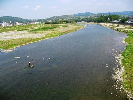 吉野川が流れていて、そこに一杯のこいのぼりがあがっていました。