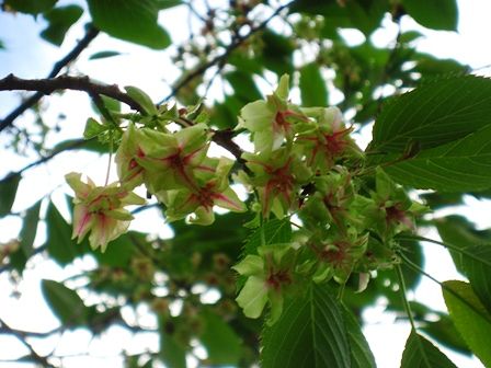 品種園の御衣黄です。咲き終わりなので、真っ赤な筋が入っています。(5/1撮影)