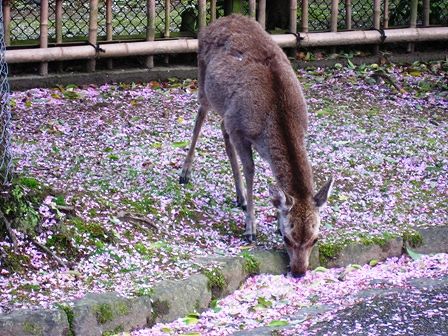 奈良八重桜の花びらを食べる鹿さん。美味しいでしょうね。(5/1撮影)