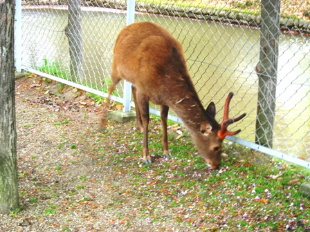 鹿さんが藤の花びらを食べています。角がかなり伸びて来てますね。