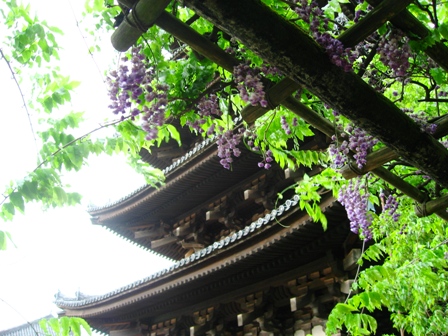 五重塔のすぐそばに藤棚があります。