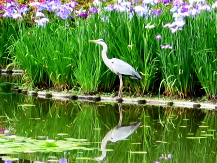 花菖蒲とアオサギ、いい感じで撮れていますね。