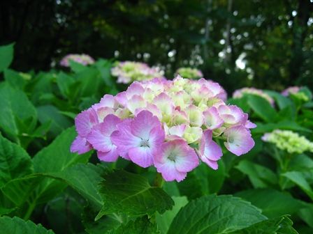 別の場所には、ピンクの紫陽花も咲いています。