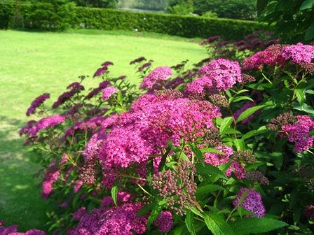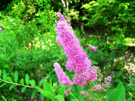 濃いピンクのシモツケが満開でした。