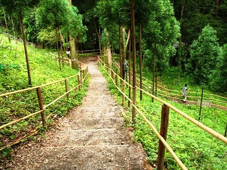 ちょっとした山と言う感じで、結構傾斜もきつく、散策路も狭いです。