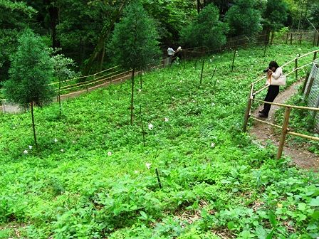 後ろの白い点がササユリです。こんな風に点在しています。