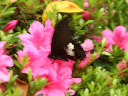 サツキに止まっている真っ黒の蝶々。何という蝶々なんでしょうね。