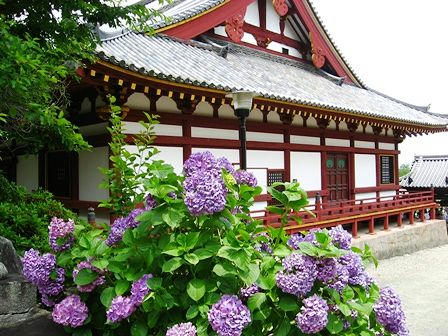本堂と紫陽花とのコラボがいいですね。よくマッチしてます。