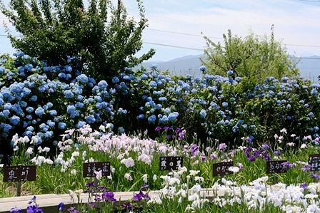今なら、花菖蒲とアジサイの両方が楽しめますね。