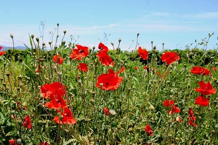 花菖蒲以外にも真っ赤なひなげしの群生があったり、