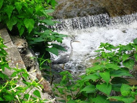 白川とアオサギが同化していて涼しそうに立ってますね。