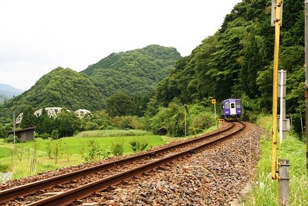 のどかな田園風景に一本の線路が。たまたま電車が通ったので、大はしゃぎ。