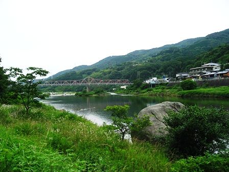 布目川と木津川が合流する辺りです。電車が1両編成なのがのどかです。
