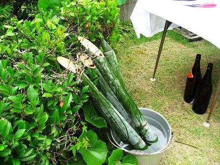 竹筒にお酒(月桂冠)が入れられて冷やしてありました。