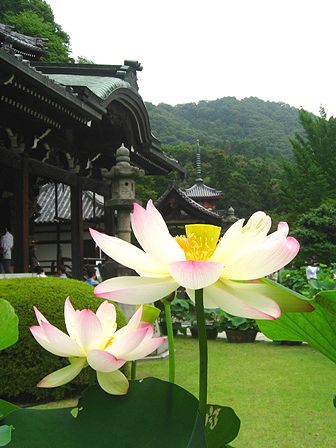 三室戸寺の境内には蓮の鉢が沢山、整然と並べられていましたね。
