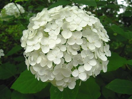 白のアジサイが真ん丸くて可愛すぎます。