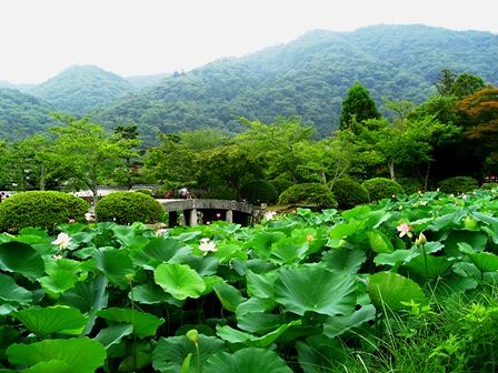 無料の天龍寺の蓮が満開で、400円の法金剛院の蓮が