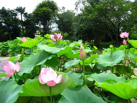 境内は蓮で一杯です。