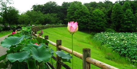 一番上の写真はとってもいいですねえ。ほぼ中央にすっと咲いている蓮の花。