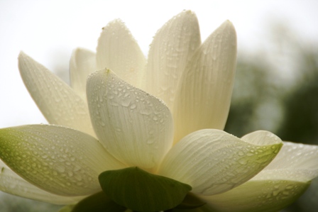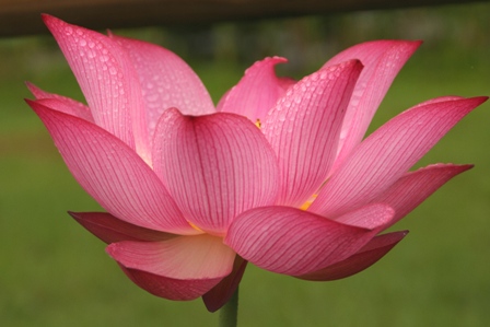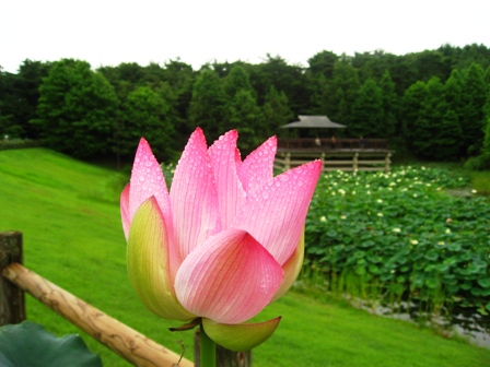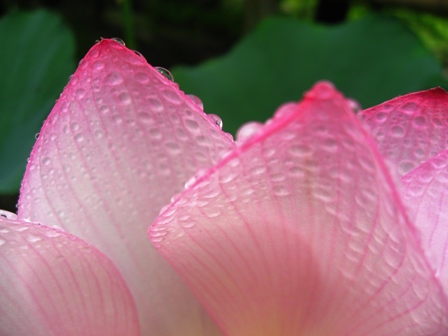 蓮の花も葉っぱも水滴が一杯付いていて、