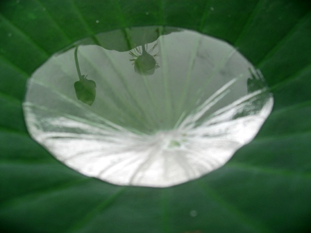 蓮の葉の中の水に写ってる蓮は雨上がりがいい演出をしてくれてとっても綺麗です。