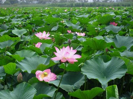 烏丸半島の蓮の群生 たくさん咲いていました。