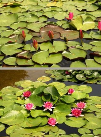 池の睡蓮、水槽や睡蓮鉢の睡蓮、それぞれ、趣があります。