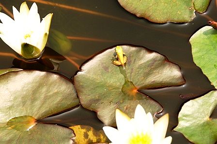 睡蓮の切れ目のある葉っぱの上のカエル、最高の組み合わせです。