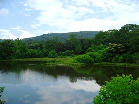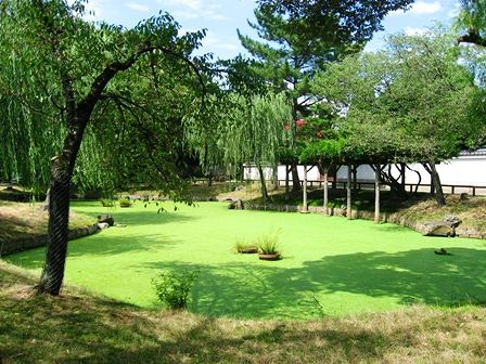 みどり池は本当に池?と思う位、水面が見事に緑色ですね。