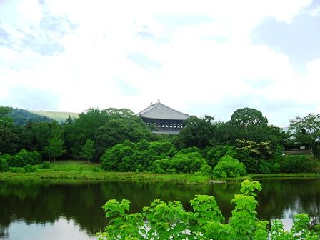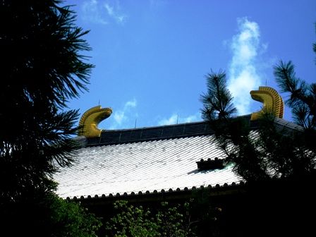 大仏殿の屋根の金色の部分が太陽に反射して光っていました。