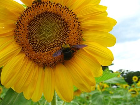 ひまわりに蜂がとまっています。