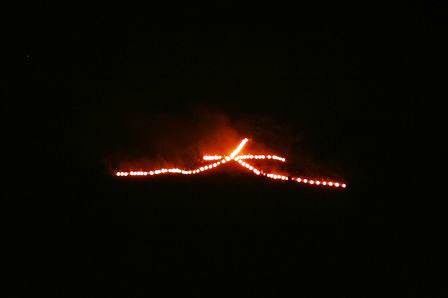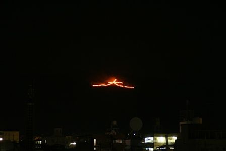 大文字送り火、さすがお嬢さんですね。『大』の字が丁度中央に撮れていて綺麗ですねえ。