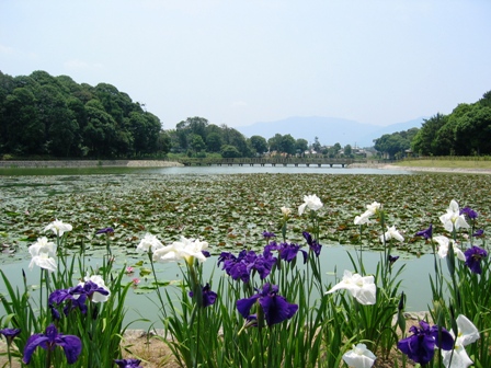 深田池も気に入りました。手前の菖蒲がすがすがしくて、その向こうに睡蓮と広がる池・・・・