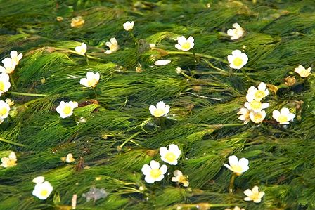 バイカモはキンポウゲ科の水生多年草で、清流でしか育ちません。