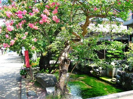 その花の正体はサルスベリです。川辺の満開のサルスベリの花が
