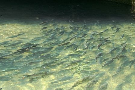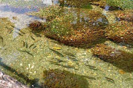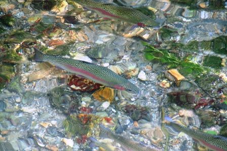 養鱒場ではありませんが、ものすごく透き通った池を大きなマスが泳いでおりました。