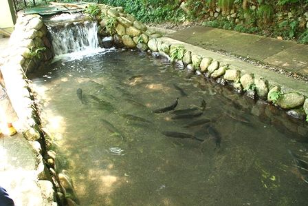 そこは名水百選の一つでニジマスも養殖していてすぐ近くでニジマス料理も食べられるようになってます。