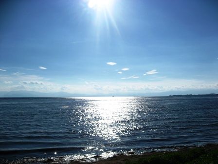琵琶湖に光る夏の太陽、