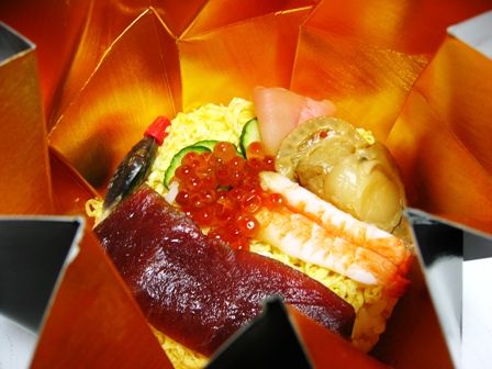 バラ寿司はとってもしゃれたものに入ってるんですね。素敵!