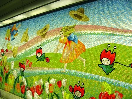 鶴見緑地駅の壁 この絵を見るといつも和みます。
