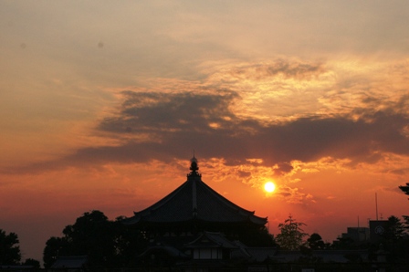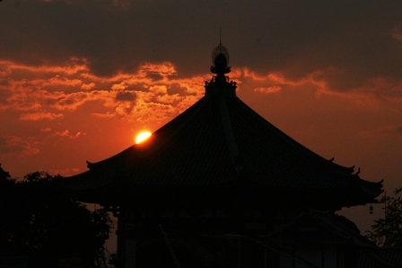 そうこうしてるうちに南円堂の方角に夕日が沈み始めました。